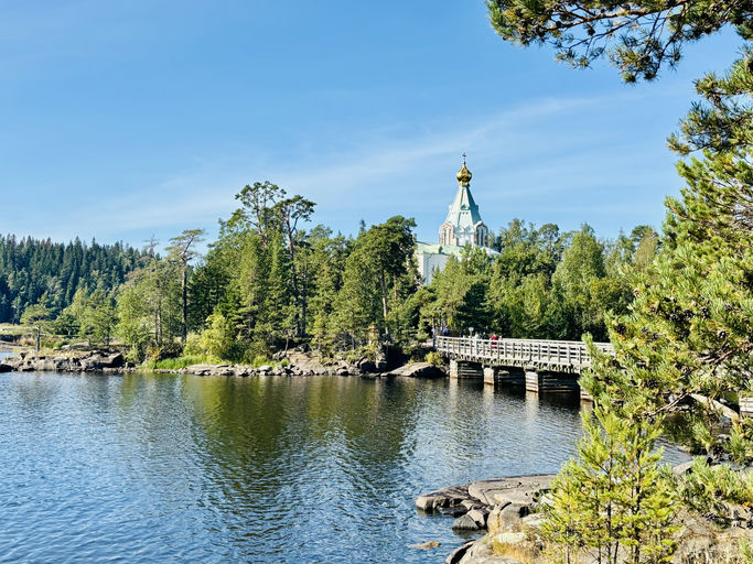 У причала Монастырской бухты начнется наша экскурсия по Центральной усадьбе Валаамского Спасо-Преображенского мужского монастыря. Посетим главный храм обители – здесь упокоены мощи отцов-основателей - преподобных Сергия и Германа. Увидим Успенскую трапезную церковь – старейшую из сохранившихся на Валааме, зайдем в церковь Валаамской иконы Божией Матери. Осмотрим келейные корпуса, хозяйственные постройки и братское кладбище.