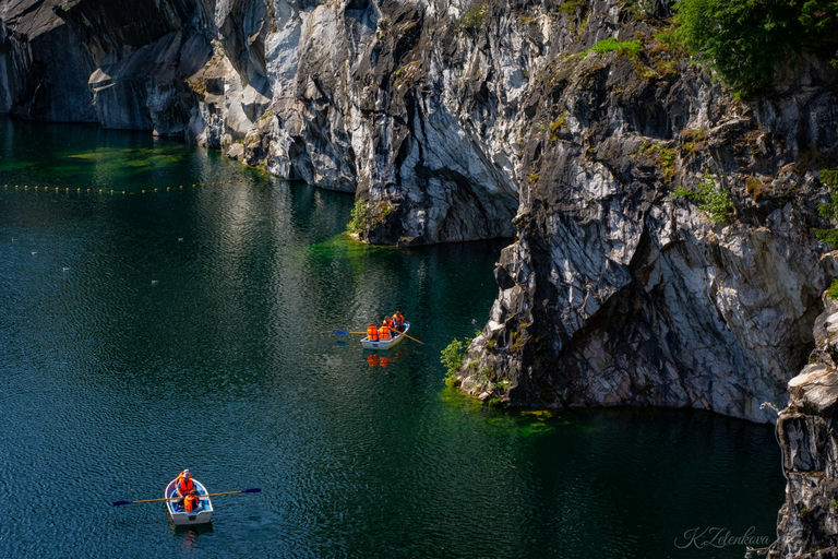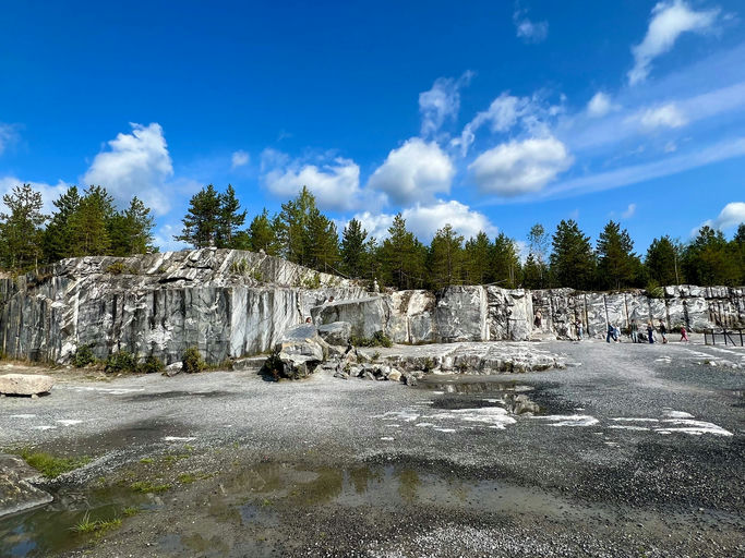 Нас ждет экскурсия вокруг чаши мраморного каньона и рассказ гида об истории этого уникального места. Раньше здесь добывали мрамор, который использовали в разных целях, в том числе для украшения зданий и дворцов в Санкт-Петербурге. Затем карьер был затоплен и превратился в красивейшую локацию.